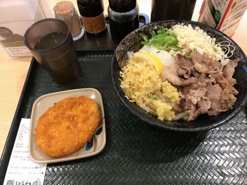 まいど憶良(おくら)です。 大阪は豊中にやって来ました。 全国展開しているうどんやさん、はなまるうどんですが、 定期的にキャンペーンなども打っているようです。 天かすは無料。 塩豚おろしぶっかけの中550円と、オプションでコロッケ120円を選択。 安…